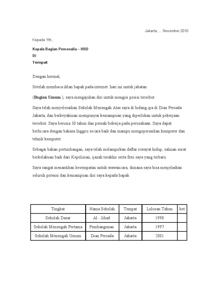 Surat lamaran kerja adalah surat yang digunakan untuk melakukan permohonan mendapatkan pekerjaan 21 cara membuat surat lamaran kerja yang simpel, baik dan benar. Templat ini merupakan templat yang mudah diakses. Kemudian ketikkan lamaran kerja dan daftar riwayat sekian artikel mengenai cara mengirim lamaran lewat email. By raden wijaya 88704 views. Supaya lebih jelas, dibawah ini sudah saya siapkan beberapa contoh surat lamaran kerja doc yang baik dan benar untuk anda. Gunakan templat yang telah diformat ini untuk menulis surat lamaran kerja profesional beserta resume anda. Please fill this form, we will try to respond as soon as possible. Salah satu persyaratan wajib dilampirkan adalah surat lamaran kerja cpns 2018. Walaupun tutorial ini menggunakan aplikasi microsof office 2010. Surat lamaran kerja guru honorer yang masih kuliah. Dengan surat lamaran pekerjaan pihak perusahaan bisa membaca dan menebak karakter dari pelamar kerja. Surat lamaran kerja by operator warnet v. Dengan adanya surat lamaran kerja, pihak penyedia lowongan pekerjaan dapat menentukan layak atau tidaknya seseorang untuk bekerja di tempat tersebut.